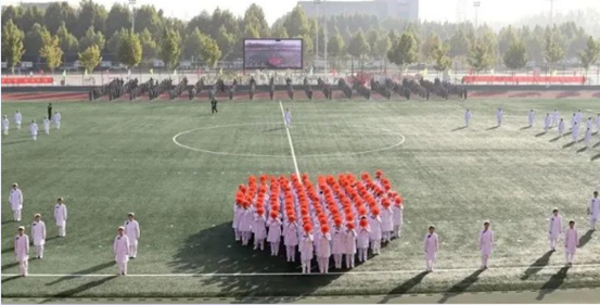 鼓舞青春表演:跃动的鼓声洪亮如雷,整齐划一的排字方阵气势磅礴,展示河护昂扬精神风貌。