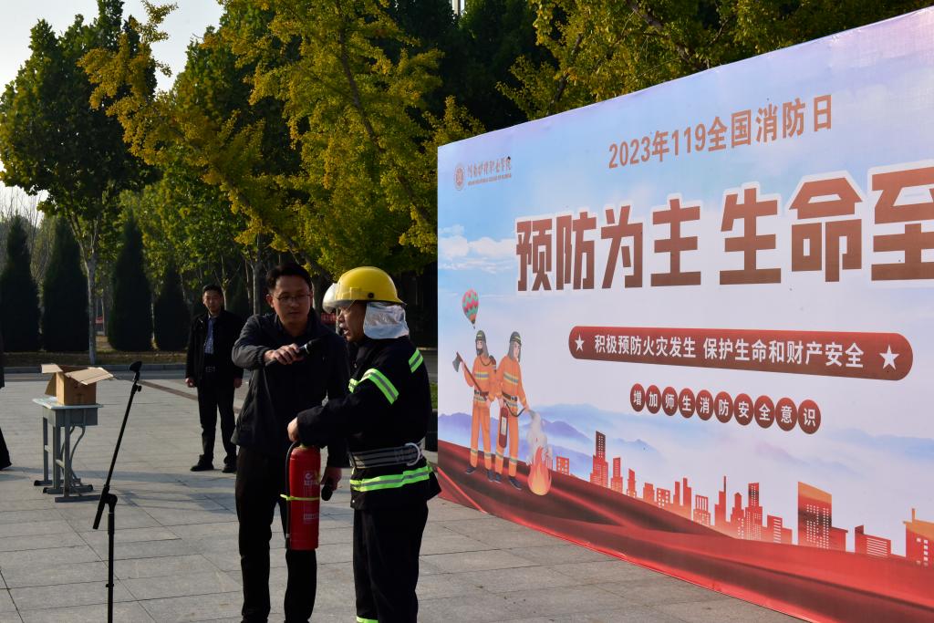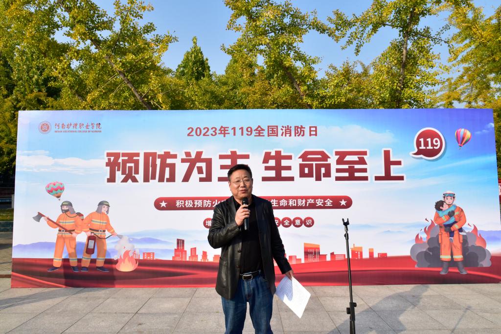 为深入学习贯彻党的二十大和习近平总书记关于宣传思想和安全生产系列重要论述精神,进一步做好学校消防安全宣传教育工作,不断提升广大师生消防安全素质和逃生自救能力,学校11月8日下午在国旗广场举行119消防宣传月活动启动仪式,学校副院长王家桥出席仪式,各系党总支书记、全体专兼职辅导员、各部门安全管理员、各班安全信息员参加,仪式由保卫处处长杨喆主持。