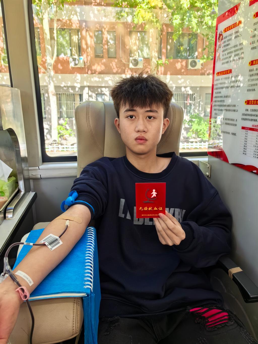 “我满心欢喜跑到献血现场,献血车上人满为患,河护师生化身‘热血勇士’,为他们的行为点赞。志愿者和血站工作人员热情的态度、暖心的服务感动满满,缓解了我内心的恐惧。送人玫瑰,手有余香。献血是一件很有意义的事情,希望能够帮助到需要的人。”23级急救护理2班学生孙文妍说。