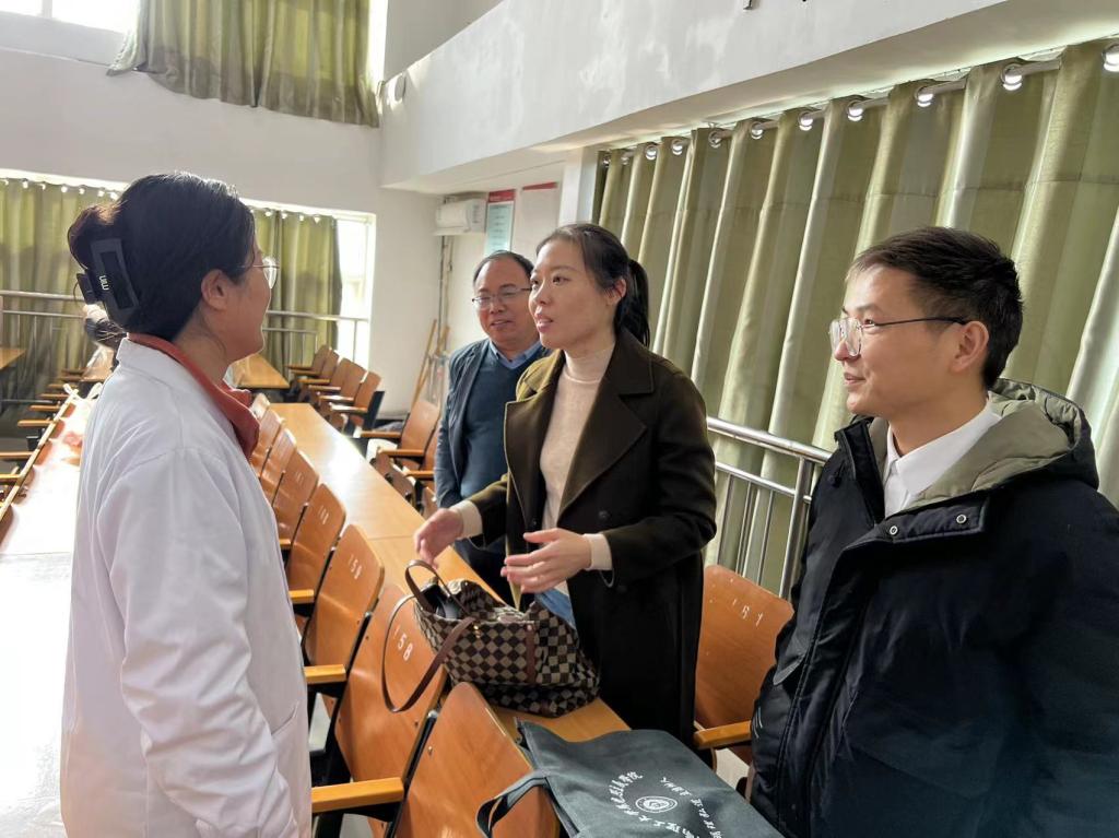 专家组一行随机推门深入课堂,先后听取了董青老师讲授的《思想道德与法治》和曹婕老师讲授的《习近平新时代中国特色社会主义思想概论》课程,并现场与教师进行了交流指导。