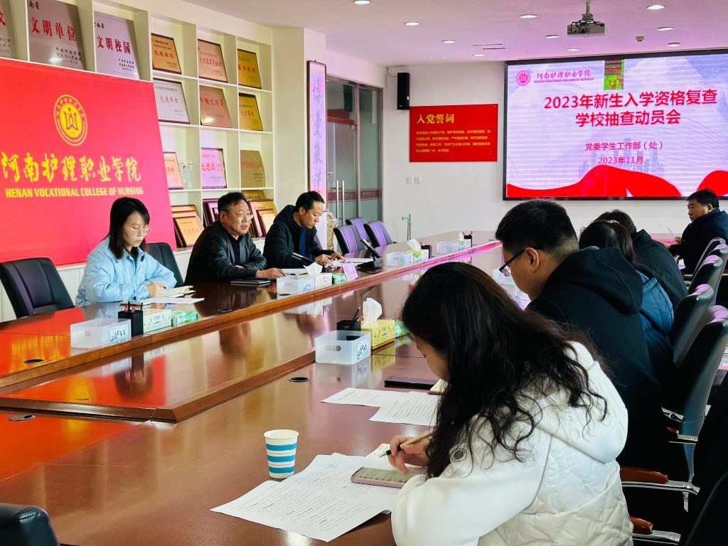 11月23日上午,在学校第一会议室召开了新生入学资格审查、录取资格复查抽查工作动员会。会上,副院长王家桥提出明确要求,各部门高度重视,精心组织;强化责任,消除隐患;通力协作,相互配合。要严格按照文件规定逐人逐项进行复查,严把入学关。学生工作部(处)部长王新庄就抽查分组、抽查流程等进行说明。