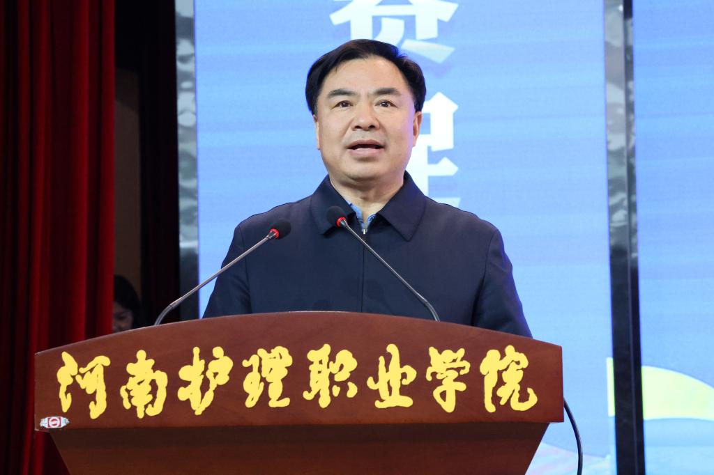 开幕式在庄严的国歌声中拉开序幕。胡仕坤致欢迎辞,他首先代表学校对参加开幕式的领导、评委、选手、领队和指导老师们表示热烈欢迎,对全体工作人员表示衷心感谢。同时,他向与会人员简要介绍学校基本情况。目前学校现有32个专业及方向,在校生15400人。学校先后获得“全国教育系统先进集体”“省级文明校园(标兵)”“平安校园”等荣誉称号。学校学生连续8年在全省护理技能大赛中荣获一等奖,特别是在今年8月份,姚梦达、张蓉蓉两位同学,代表河南省斩获“2023年全国职业院校护理技能大赛(高职组)”一等奖,这在学校72年的办学历史上尚属首次,凸显了学校教育教学水平和教育教学改革的成效。他指出,此次大赛是贯彻落实国家和全省职教精神的重要载体,更是全省相关职业院校交流学习的良好平台。同时,也是对河南护理人才选拔和培养的一次检阅,真正达到全面提高教育教学质量、巩固卫生职业教育成果、强力推进职业教育现代化建设的目的。希望参赛选手要沉着冷静,以良好的心理素质和精神风貌取得好的成绩。希望各参赛单位教师以此为契机,不断提高教学质量,为培养更多优秀护理人才做出更大的努力。希望裁判员们严格按照比赛规则进行评定,保证比赛的公平、公正。他强调,学校将精心组织,周密安排,认真细致地做好各项赛务工作,力将大赛办出水平、办出特色、办出品质、办出影响!