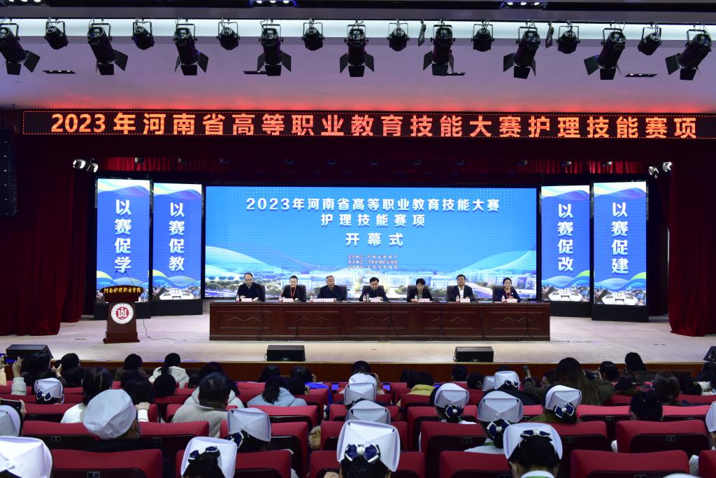 在热烈的掌声中,吕冰宣布:2023年河南省高等职业教育技能大赛护理技能赛项开幕。
