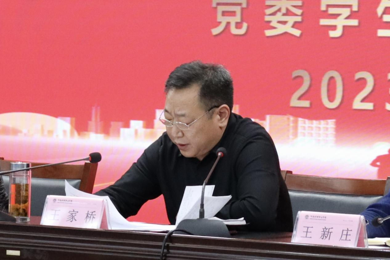 王家桥强调,学生管理工作是学校教育工作的重要组成部分,要进一步加大学生管理工作的力度,提高管理水平和效率。一要注重学生的思想教育,引导学生塑造健全的世界观、人生观和价值观,增强他们的社会责任感和集体荣誉感。二要加强心理健康教育,关注学生的成长需求,帮助他们解决学习和生活中的困难。三要加强学风建设,营造良好的学习氛围。四要不断提升自身应对突发事件的能力,以便在紧急情况下能够迅速、有效地解决问题,更好地保障学生的安全和权益。五要加强学习,树立终身学习的理念,积极构建全员育人、全过程育人、全方位育人的教育管理新格局。