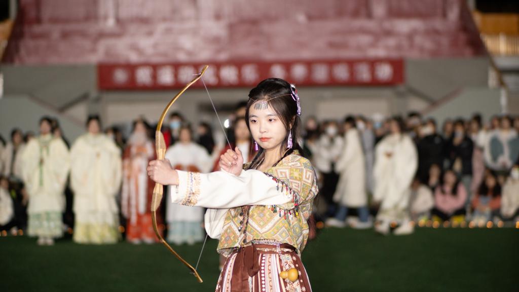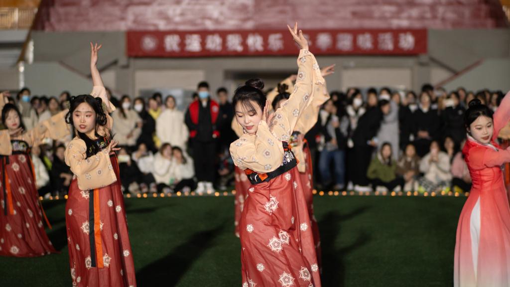 同学们欣赏着古典舞蹈,哼着歌曲,跟随着旋律,展现了青年活力。火热河护院,火火国风潮。