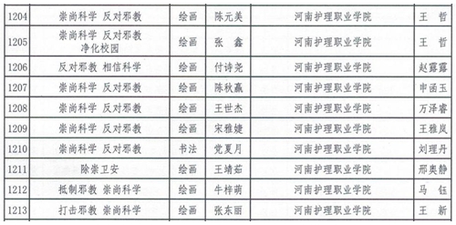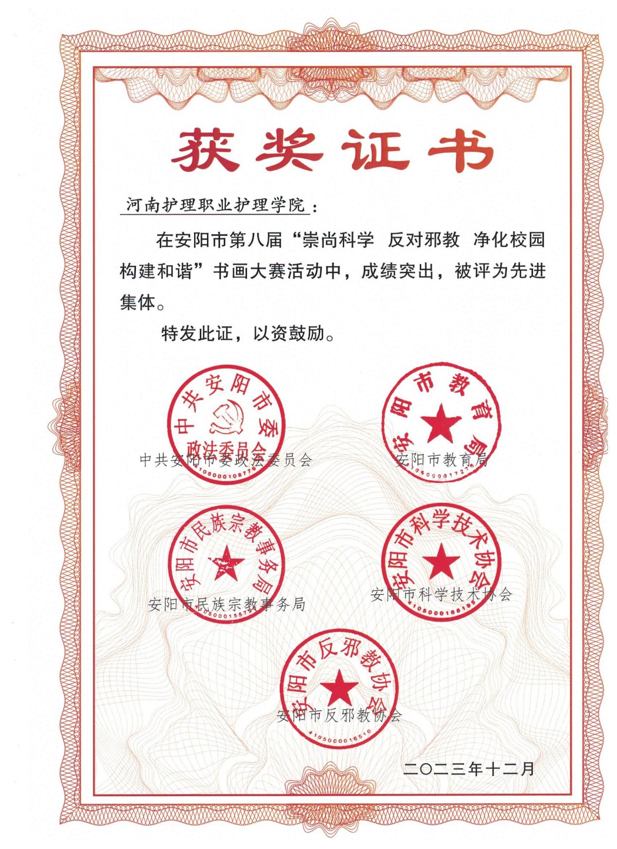 为深入贯彻落实习近平总书记关于反邪教工作重要指示精神,切实加强校园反邪教警示教育工作,进一步增强广大师生的识邪、防邪、拒邪、反邪的能力,开云积极组织师生参加安阳市第八届“崇尚科学、反对邪教、净化校园、构建和谐”书画大赛,荣获佳绩。