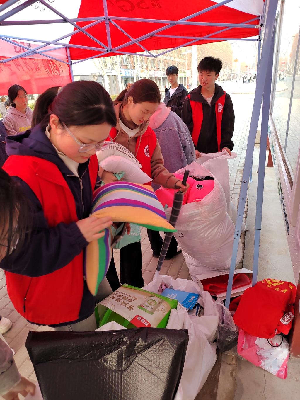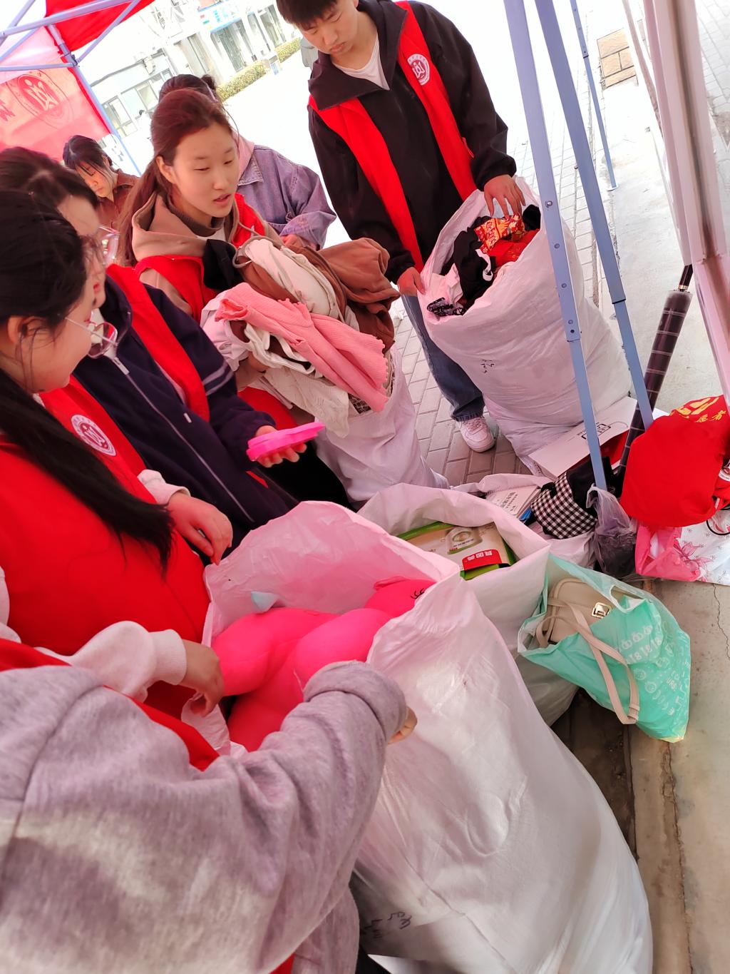 活动现场,同学们携带着自己闲置衣物、课外书籍以及其他物品前来捐赠。志愿者细致地接收捐赠物品,并对捐赠信息进行详细登记。
