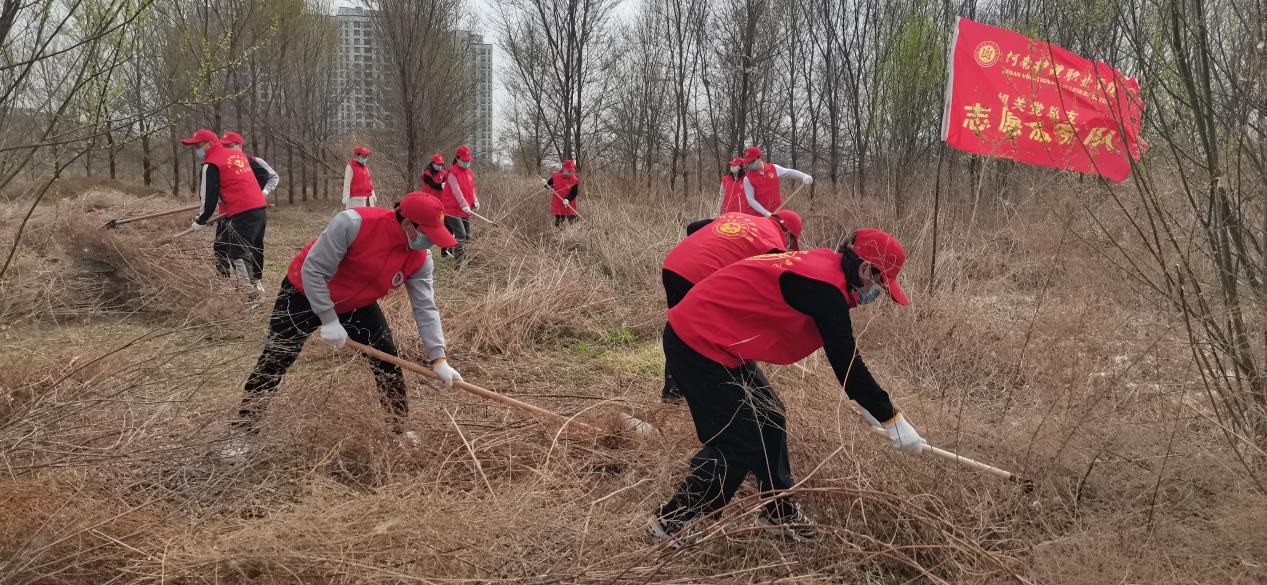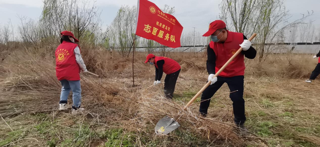 春日风光无限好,除草护绿正当时。3月21日,开云kaiyun官网机关党总支、后勤管理处积极响应安阳市绿化委员会办公室第46个“植树节”义务植树活动的号召,组织学校机关党员干部前往文峰区南林高速城市防护林参与绿化林带抚育管护活动。