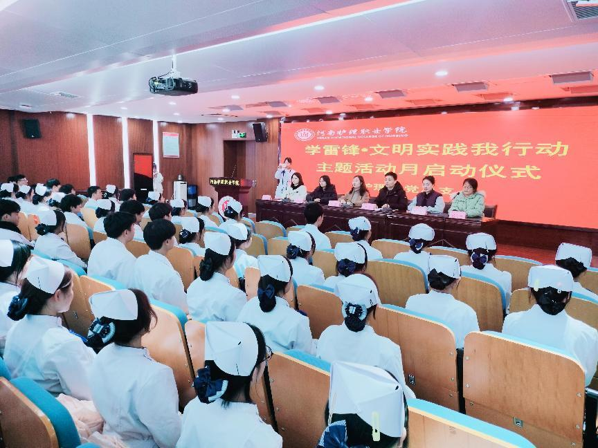 护理系举行雷锋月活动启动仪式,观看雷锋故事,领悟雷锋精神,带领护理系学生代表集体宣誓。誓言就是决心,誓言更是行动。同学们身穿护士服,在整齐嘹亮的誓言中表露向雷锋同志学习的坚定信心。