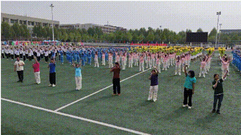 本届运动会开幕式亮点节目众多,壮观震撼的排舞表演《没有共产党就没有新中国》展现了河护人以青春之我、奋斗之我,扛起新时代责任的壮志豪情;青春洋溢、活力四射的啦啦操和舞蹈《青春追梦》彰显了河护学子昂扬向上、奋勇拼搏的精神面貌;教职工节目八段锦动作轻盈优雅、气韵沉稳;甲骨文广播操极具特色、生动形象;大合唱歌舞《一起跳舞吧》节奏明快,感染了在场的每一个人。