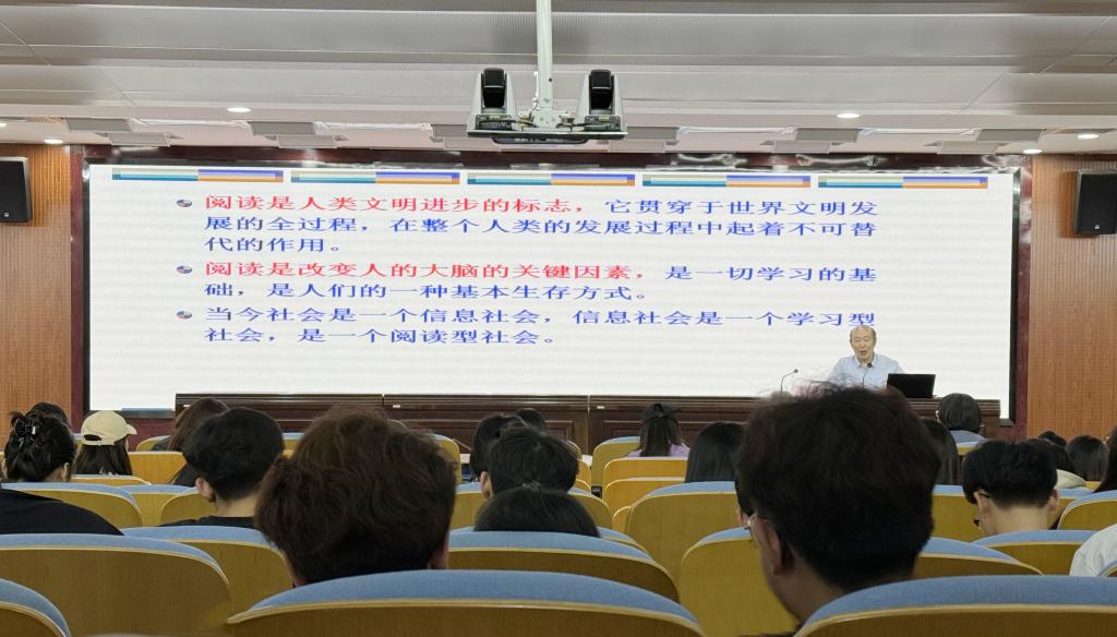 值开云举办2024年“书香筑梦 阅见未来”读书节之际,5月8日下午,图书馆联合国际教育系、药学与医学技术系共同举办读书节系列活动---名家讲堂。名家讲堂特别邀请河南省高校图书情报工作委员会副主任、河南省图书馆学会副理事长张怀涛教授,为开云师生带来一场精彩的阅读主题报告--“大学生的读书生涯”。副院长王家桥出席活动,图书馆馆长马素婷主持,国际教育系、药学与医学技术系400余名师生代表现场聆听。