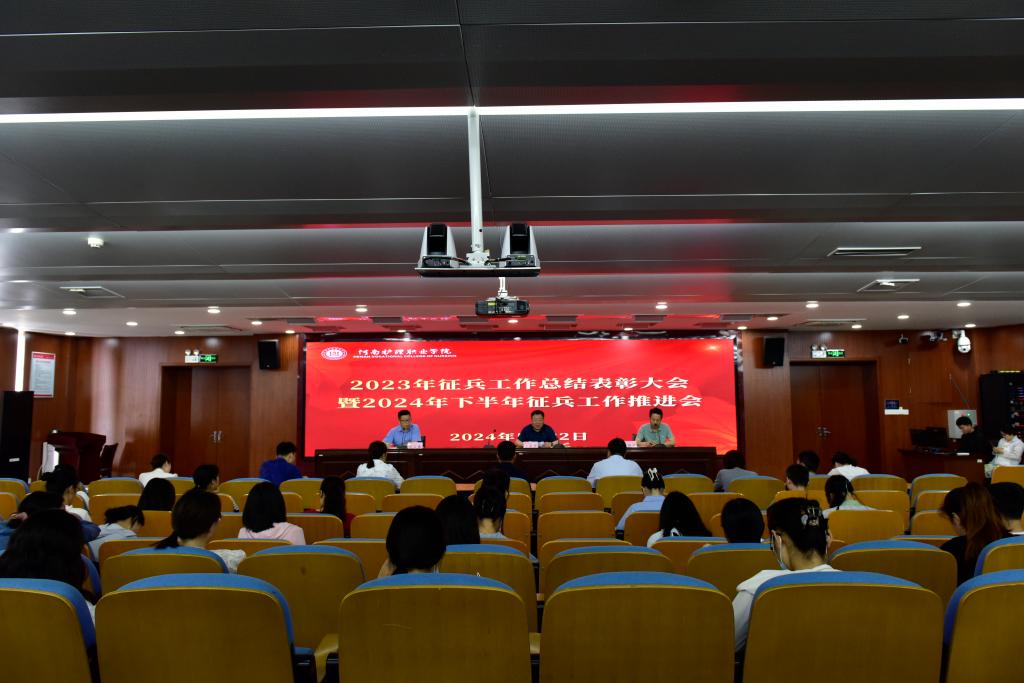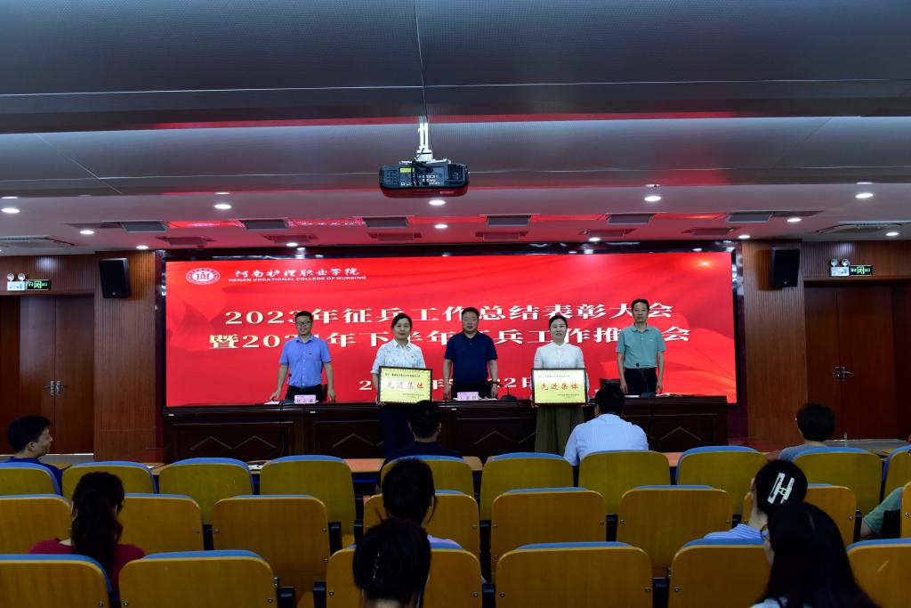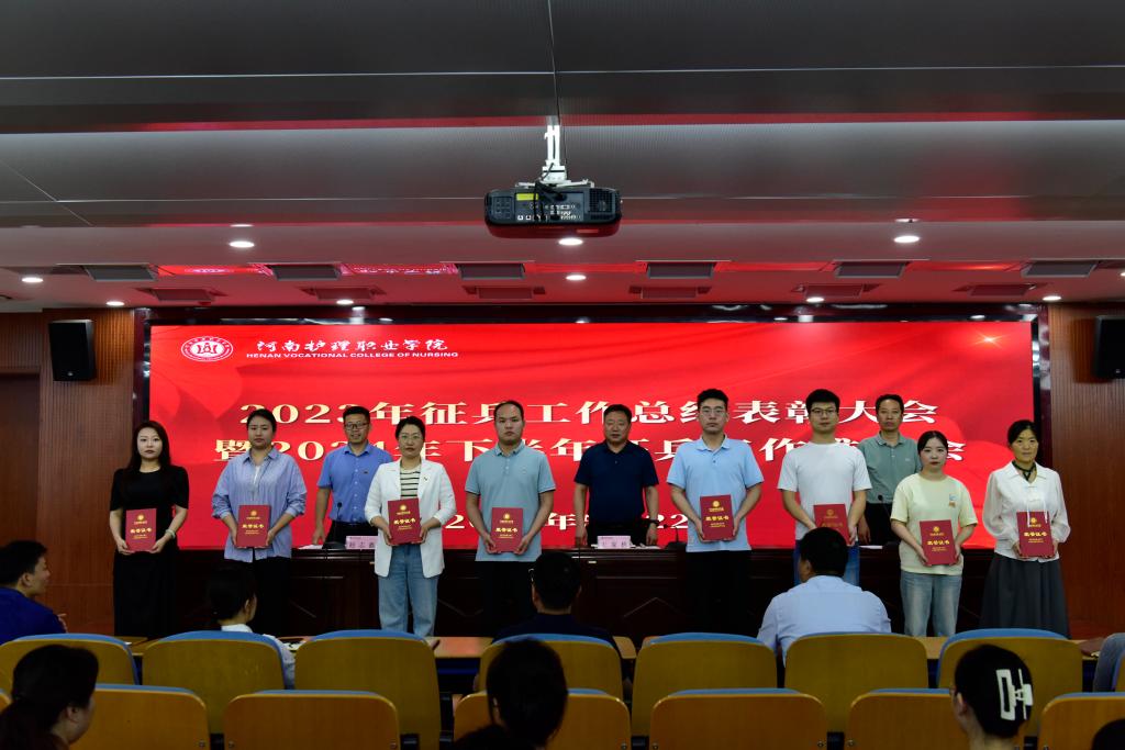 王新庄宣读了《开云kaiyun官网关于表彰2023年度“征兵工作先进集体”“征兵工作先进个人”的决定》(豫护院党〔2024〕5号)文件;王家桥向荣获“征兵工作先进集体”的护理系和临床医学系颁发了奖牌,向荣获“征兵工作先进个人”的辅导员老师颁发了荣誉证书;赵志鑫宣读了2024年各系征兵任务,并就2023年度征兵工作中出现的突出问题进行了解答。