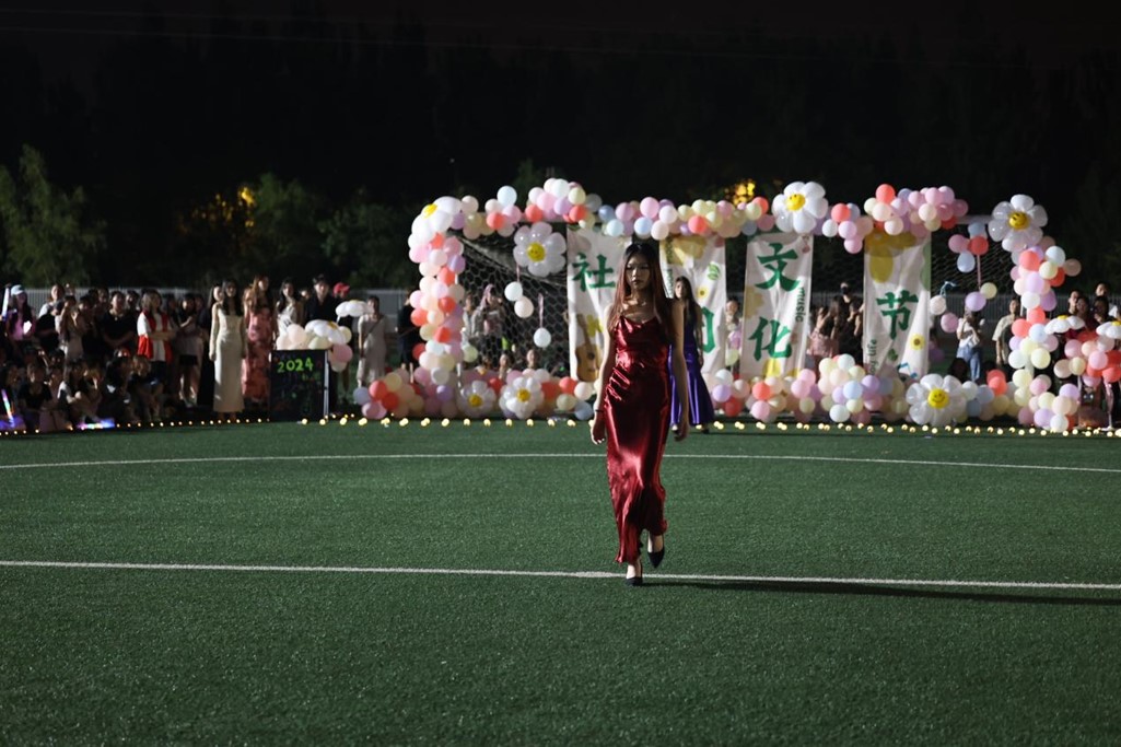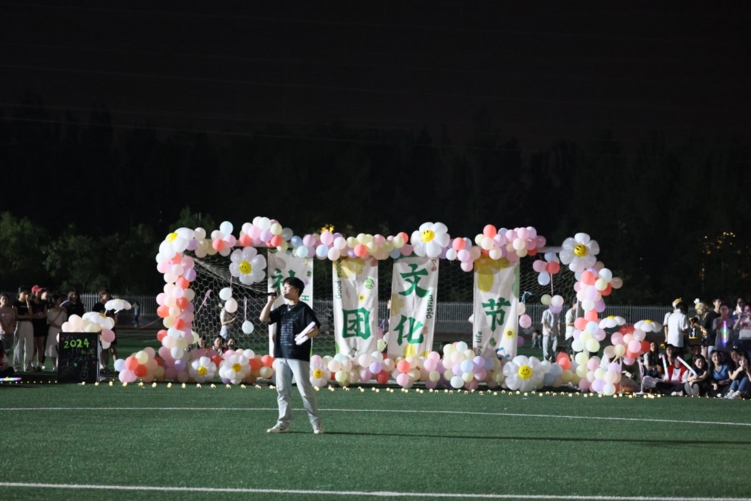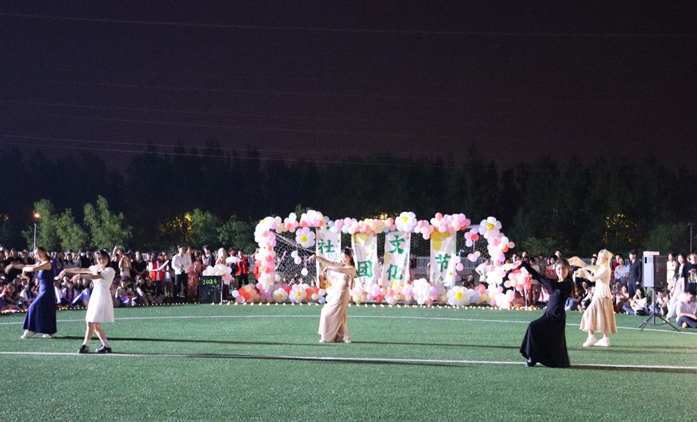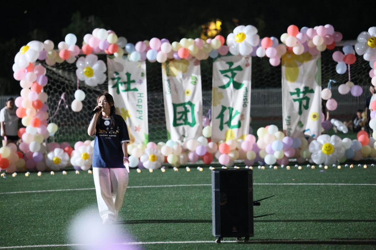 夜幕下的运动场仿佛化身为艺术的殿堂活动现场,活动现场灯火辉煌,精彩节目不断上演。各个学生社团都拿出了看家本领。激情四溢的乐队演奏嗨翻全场,强烈的节奏让观众们不禁随之摇摆;优美的舞蹈节目轮番登场,舞者们灵动的身姿在灯光下熠熠生辉,展现出青春的活力与风采;还有深情的歌唱表演、时尚的模特走秀以及传承文化的汉服展示等,丰富多彩的节目让同学们目不暇接。