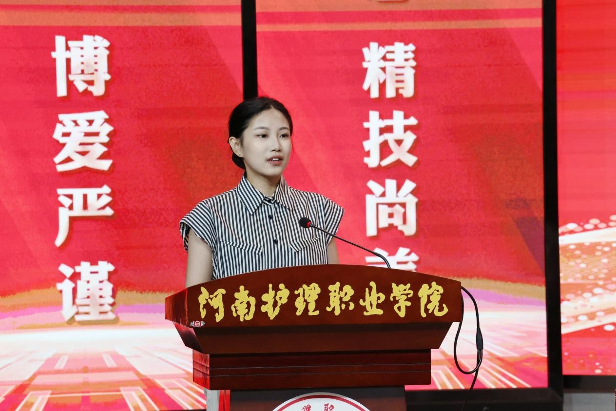 教师代表王雅岚祝福2024届毕业生顺利完成学业,回忆了同学们在河护的三年拼搏时光。并向同学们提出三点希望:坚守初心,不忘使命;心存敬畏,严于律己;磨炼意志,迎接挑战。