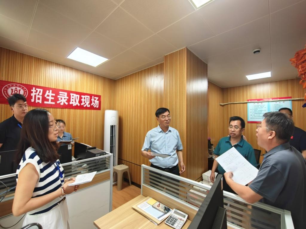 8月13日上午,学校党委副书记、院长胡仕坤、副院长黄敬堂一行来到招生录取工作现场,视察指导2024年招生录取工作,并慰问奋战一线的招生录取工作人员。