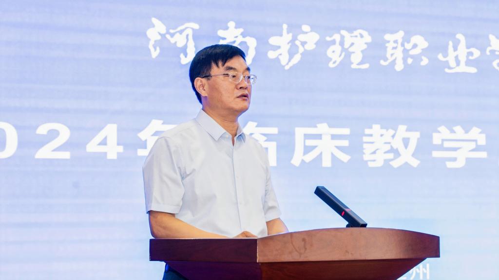 开幕式上,胡仕坤在讲话中回顾了近年来学校同教学医院在“1+1+1”联合培养工作中取得的成效,深入分析了新形势下高等卫生职业教育的改革和发展趋势,提出了当前联合培养模式中存在的不足,并对如何改进临床教学工作提出五点要求与大家共勉:一是要不断加强“双师型”教师队伍建设。通过专业培训提升教学能力和专业素养,充分利用现代信息技术探索新的教学方法和手段,结合临床上大量的病例使用案例教学、混合式教学等教学方法,激发学生的学习兴趣。二是要进一步规范教学管理。教学医院要严格执行教学管理运行程序和“五统一”要求(即统一教学标准、统一教学计划、统一教材、统一考试、统一毕业实习安排),推动教学工作进一步规范化、制度化,确保人才培养标准落实落细。三是要持续强化临床教学。临床实践是医学教育的核心环节。要充分利用医院丰富的临床资源,为学生提供更多的实践机会,让他们在真实的临床环境中锻炼技能、积累经验。四是要加强医学人文教育。要以新内涵强化医学生培养,加强救死扶伤的道术、心中有爱的仁术、知识扎实的学术、本领过硬的技术、方法科学的艺术的教育,培养医德高尚、医术精湛的人民健康守护者。五是要高度重视学生管理。要始终把学生安全放在首位,进一步建立健全学生管理制度和应急预案,严格宿舍管理和请销假制度,时刻关注学生的动向和心理状态,同时不断优化学生学习、生活条件,确保每一名学生安全顺利完成学业。