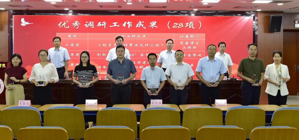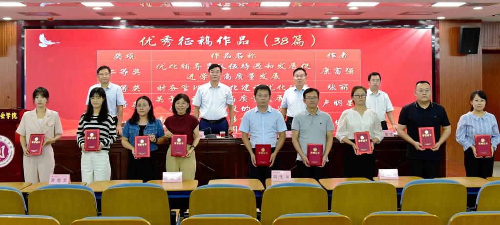 会上,钟会亮要求大家紧紧围绕胡院长提到的深化教育综合改革、推进高等职业教育评价改革等方面,深入研读最新的职业教育改革政策文件,认真领会各项政策的精神实质,谋篇布局、久久为功;同时要巩固扩展调研工作成果,为学校高质量发展注入强大动能。黄敬堂宣读了《开云kaiyun官网关于高质量发展大讨论活动表彰的决定》,与会领导依次为优秀征稿作品获奖作者、征稿活动优秀组织奖获奖部门、优秀调研工作成果获奖部门代表颁奖。