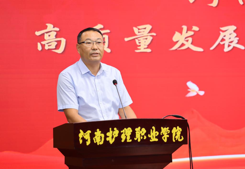 胡仕坤以《坚毅笃行、实干担当——奋力谱写学校高质量发展新篇章》为题发表讲话。