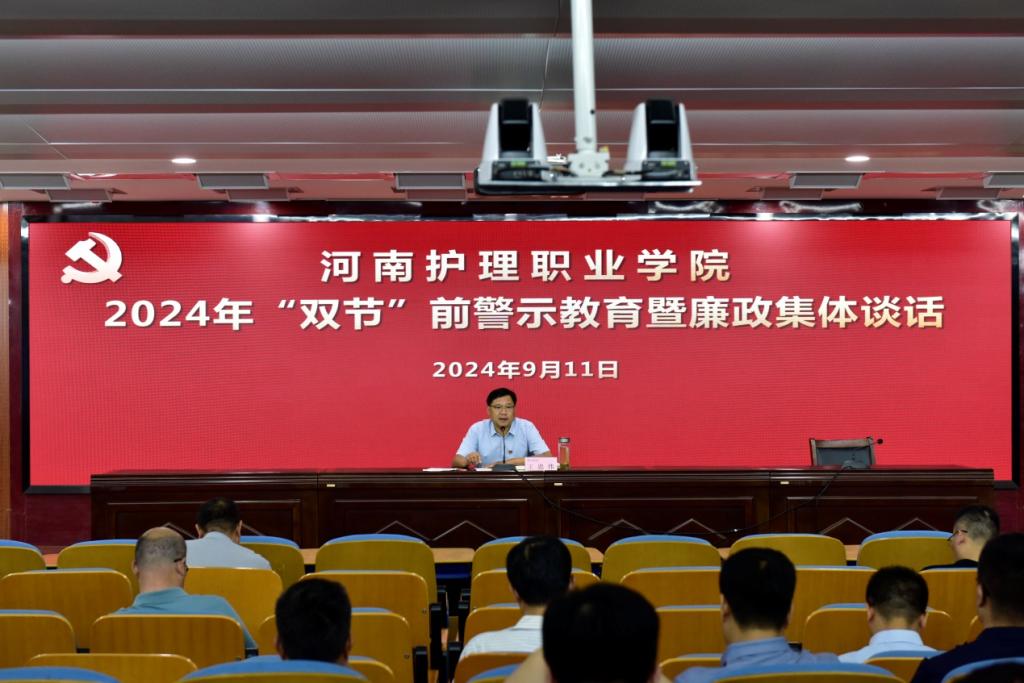 9月11日上午,在中秋节和国庆节“双节”来临之际,学校纪委在学术报告厅举行“双节”前警示教育暨廉政集体谈话。纪委书记王忠伟出席会议并开展廉政集体谈话。全体副科级以上干部参加会议。纪检监察处副处长赵亚灿主持会议。