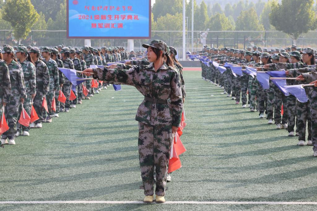 飒爽展英姿,奋斗正当时。10月10日上午,一场振奋人心的2024级新生开学典礼暨军训汇演在运动场盛大举行。学校领导杜天信、胡仕坤、钟会亮、王忠伟、黄敬堂,承训部队首长及全体教官、副科级以上干部、2024级专兼职辅导员共同见证来自全国各地共4887名新同学载梦而来、逐梦前行的崭新篇章。大会由副院长黄敬堂主持。