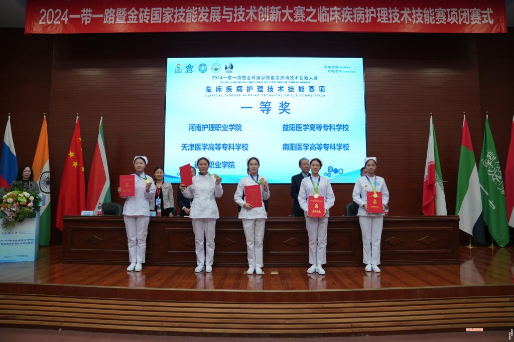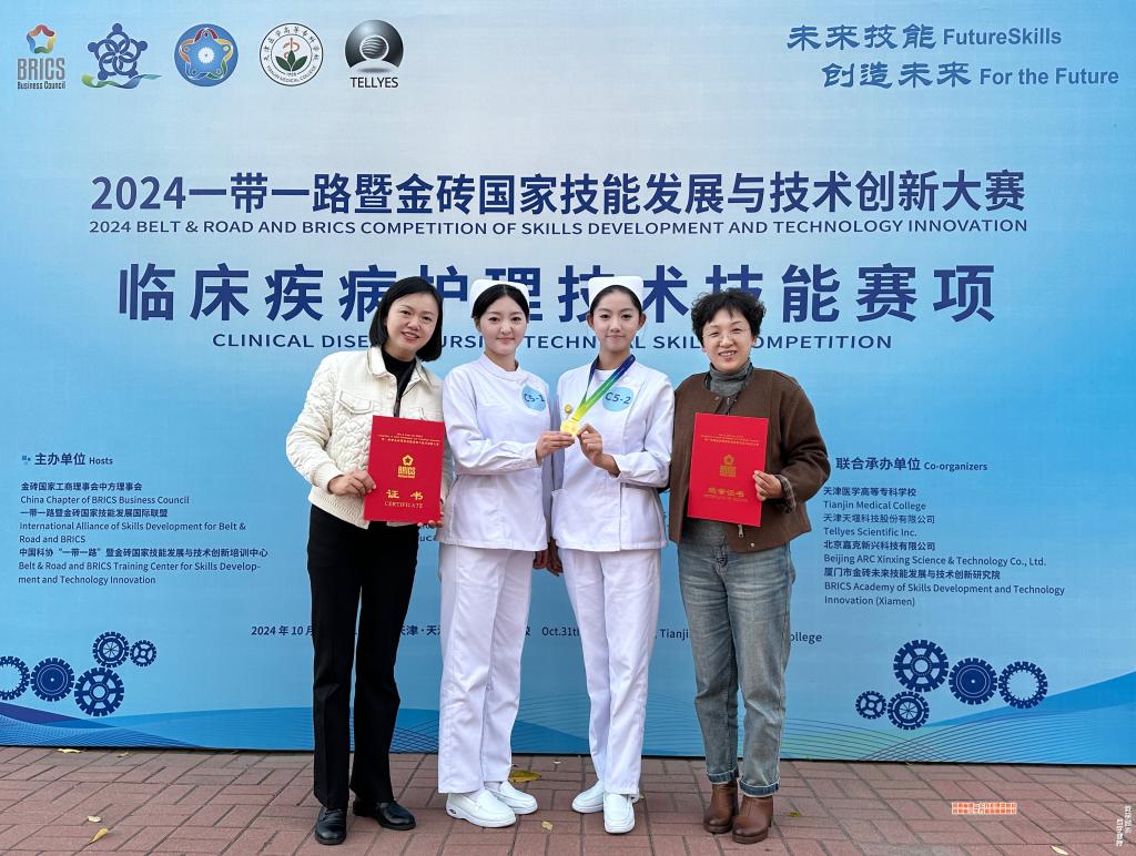 11月1日至3日,在2024“一带一路”暨金砖国家技能发展与技术创新大赛临床疾病护理技术技能赛项中,由开云李晓静、申洪娇两位教师指导,胥永莉、陈昱阁两位同学组成的参赛团队凭借扎实的知识积累、过硬的技术操作和灵活的应变能力,经过激烈角逐,从全国22个省、自治区、直辖市的49支代表队中脱颖而出,斩获一等奖。