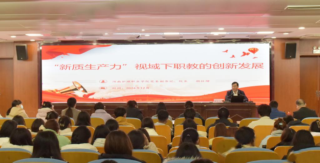 胡仕坤以《“新质生产力”视域下职教的创新发展》为题开启思政课堂。他从“新质生产力的产生背景内涵与特征”“发展新质生产力的重要意义”“发展新质生产力与职业教育”“青年学生在发展新质生产力中的使命担当”四个方面,深入阐释了什么是新质生产力、为什么要发展新质生产力、怎样发展新质生产力以及职业教育和青年学生如何适应和引领发展新质生产力等重大理论和实践问题,使青年学生充分认识到,发展新质生产力是推动高质量发展的内在要求和重要着力点,是时代所需、发展所急、大势所趋,要主动融入这一发展浪潮,不断提升专业知识和技能,助力经济社会高质量发展。