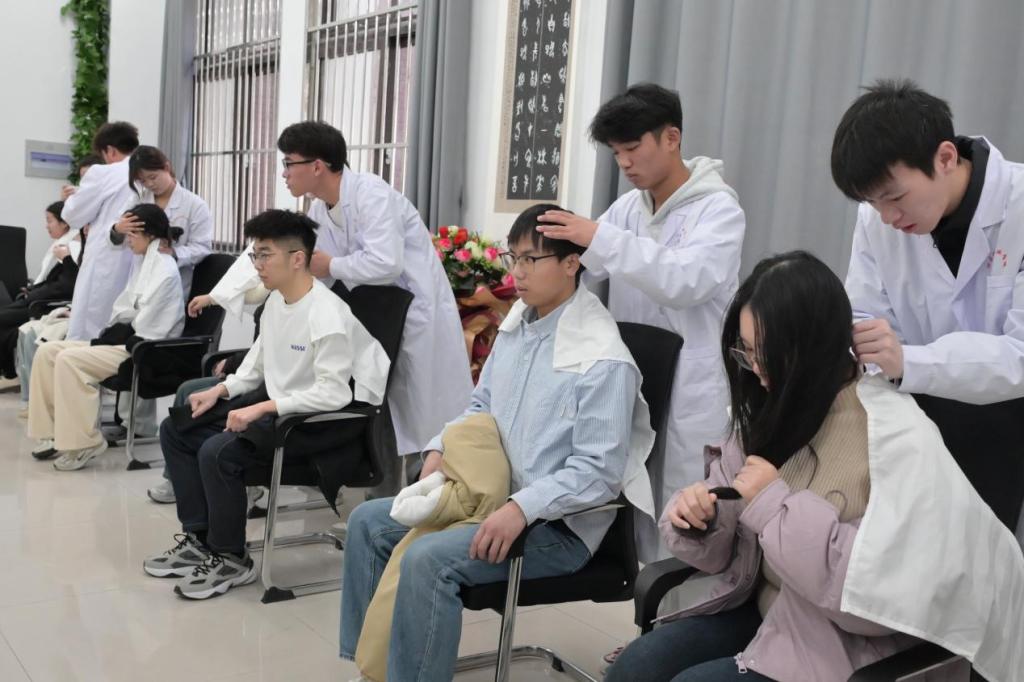 晨曦针推志愿活动。晨曦针推馆的志愿者们通过推拿、放松等方式帮助师生们缓解身体不适,提升健康水平。同时联合校外单位安阳学院开展中医健康推广活动,将中医推拿这一传统医学瑰宝发扬光大,让更多人了解并受益于中医文化。晨曦针推馆开馆至今,组织开展进社区、庆重阳、助力运动会等志愿服务活动百余次,服务师生群众近万余人次。通过参与志愿服务活动,同学们锻炼了自己的实践能力、团队协作能力和奉献精神,为未来的职业发展和社会贡献打下坚实的基础。