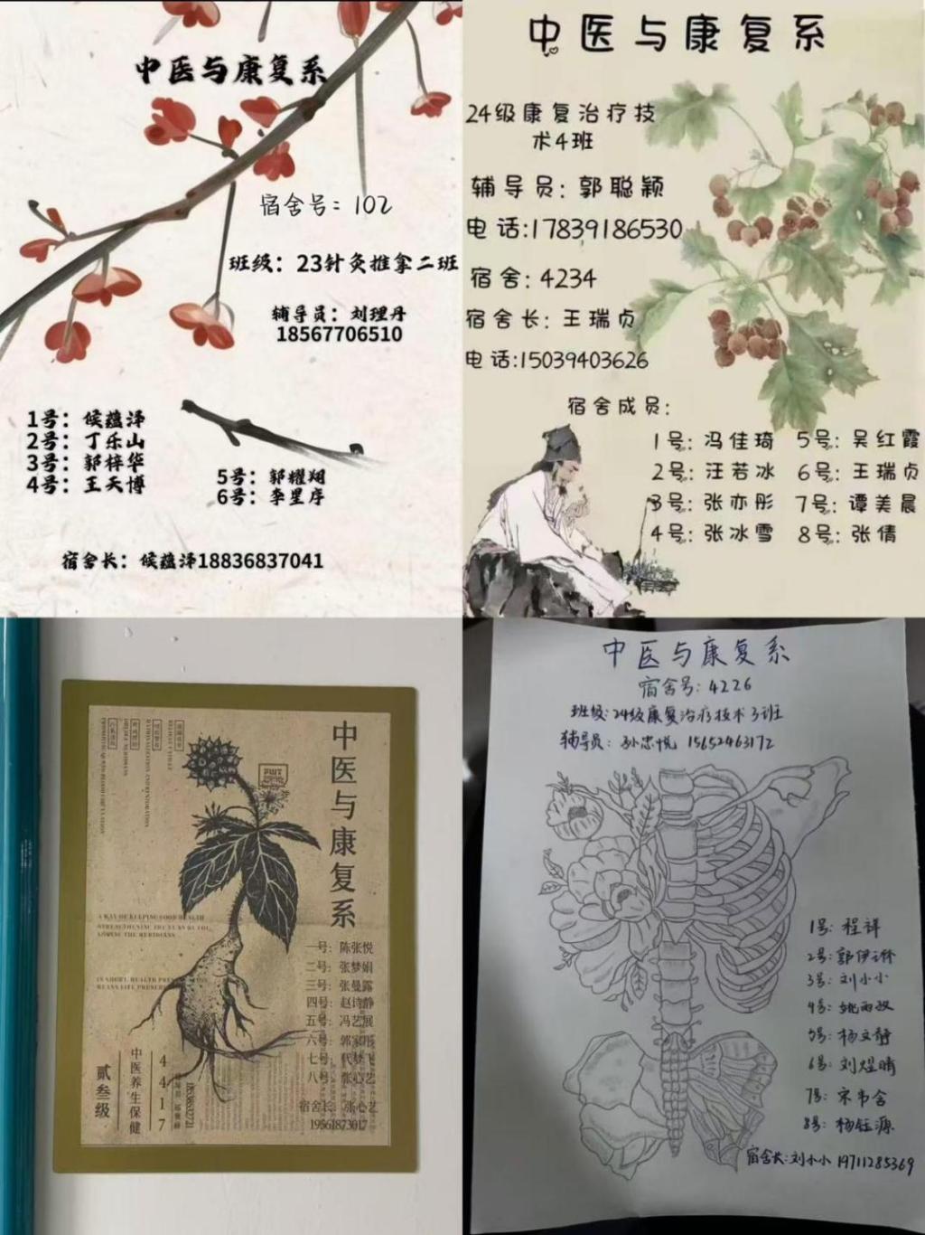 宿舍门牌设计大赛。通过宿舍门牌设计活动,让学生燃起专业兴趣,增强专业观念,培育美学素养,弘扬中医文化。设计活动收到80余个宿舍作品,近600人次参与其中,既锻炼了同学们的团队协作能力、动手能力和创新思维,也让更多人感受到了中医传统文化的魅力。