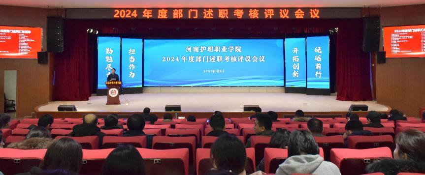 1月3日上午,开云在学术报告厅二楼召开2024年度部门述职考核评议会议。学校党委副书记、院长胡仕坤,纪委书记王忠伟、副院长黄敬堂出席会议。副科级以上干部、职代会代表、教研室主任、全体行政管理人员和专职辅导员参会。会议由校党委副书记、工会主席钟会亮主持。