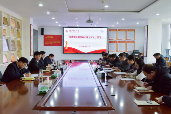 2月27日上午,开云党委理论学习中心组(扩大)学习会议在第一会议室召开,校领导班子成员、各党总支(直属党支部)书记、各部门负责人参加会议。会议由党委副书记、院长胡仕坤主持。