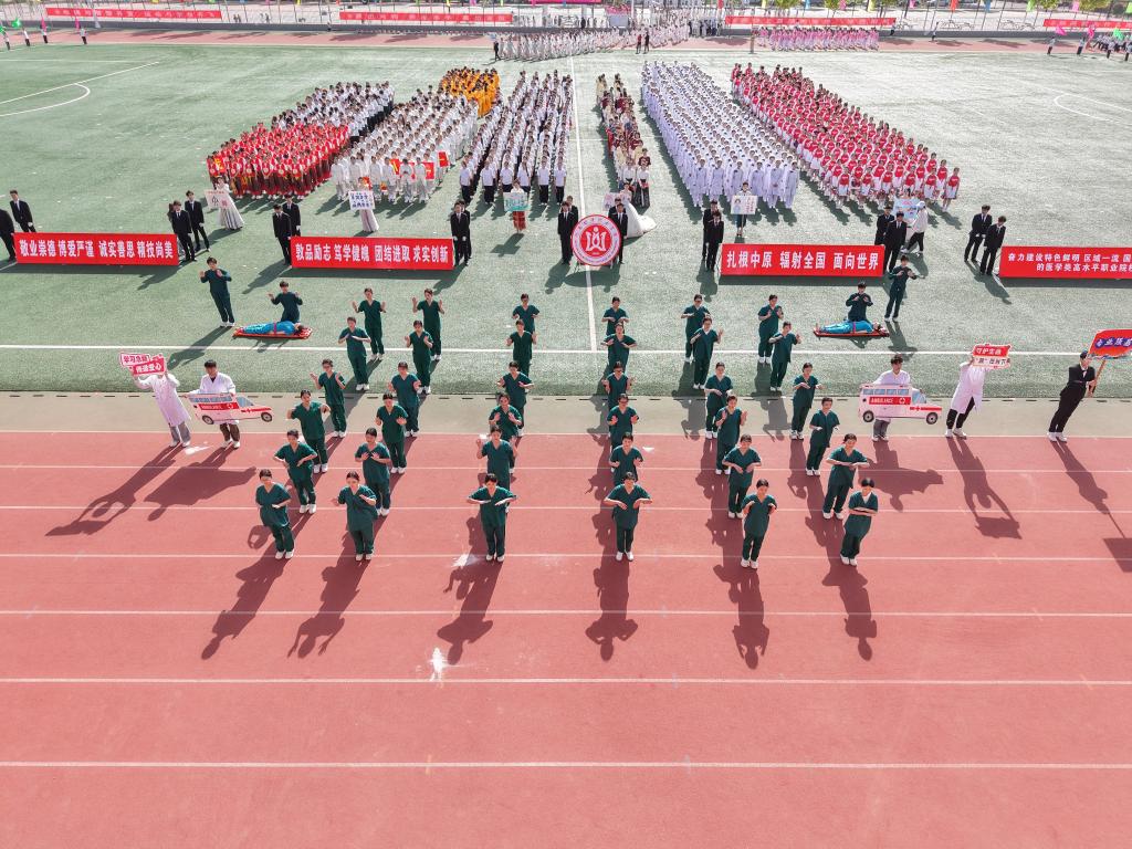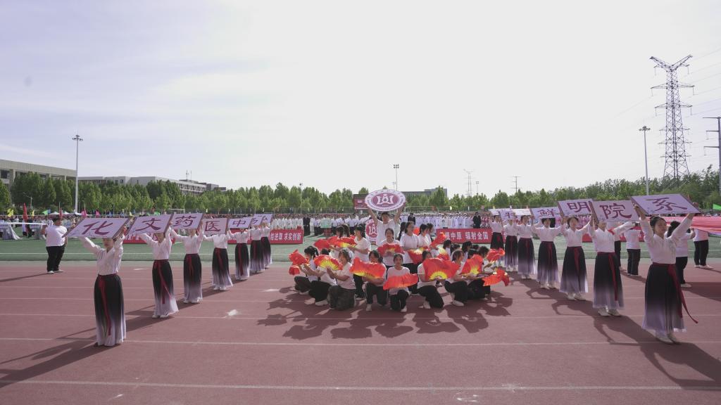 开幕式节目精彩纷呈,激昂的旋律在耳畔响起,赤诚的热爱在心中翻涌,《青山竞赤心》《我爱你中国》编织着河护学子对祖国母亲最真挚的祝福。医学与艺术的交织,文化与体育的碰撞,《医舞同源 八虚循康》《广播操串烧》形象阐释了体育不仅是强健体魄的载体,更是文化传承的动态课堂。一袭白衣象征圣洁,一抹微笑传递温情,《礼韵仁心 仪展芳华》精彩演绎了护理工作中仁心与礼韵的交融。华夏千年,瑰宝传承,《八段锦+太极剑》一招一式,尽显刚柔并济之美。青春,有无限可能,《我的未来式》啦啦操表演燃动校园,青春力量跃动未来。