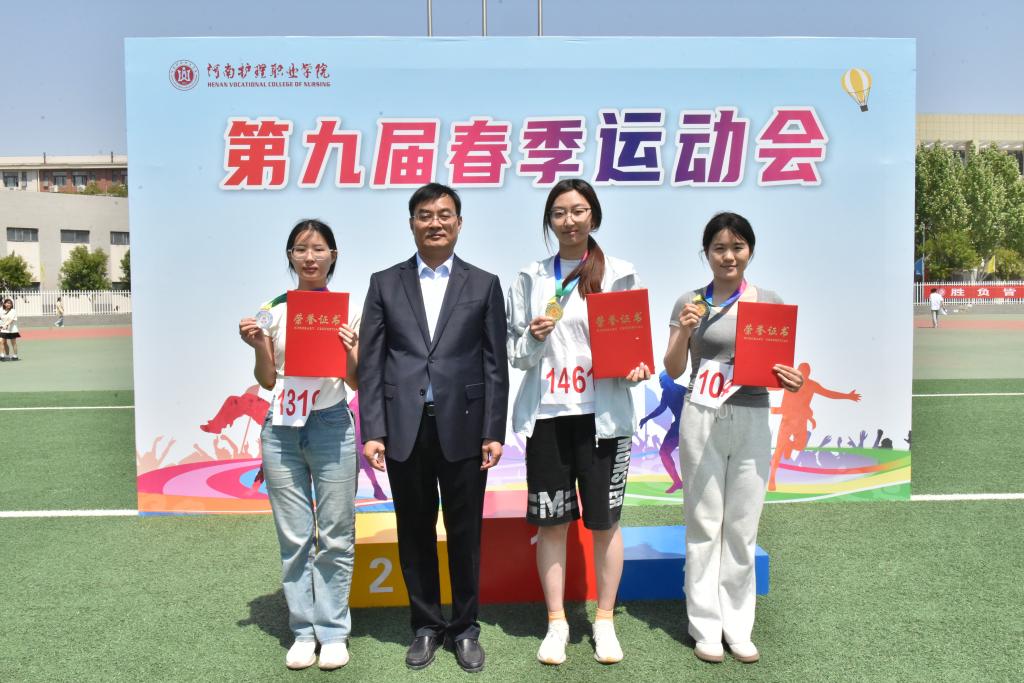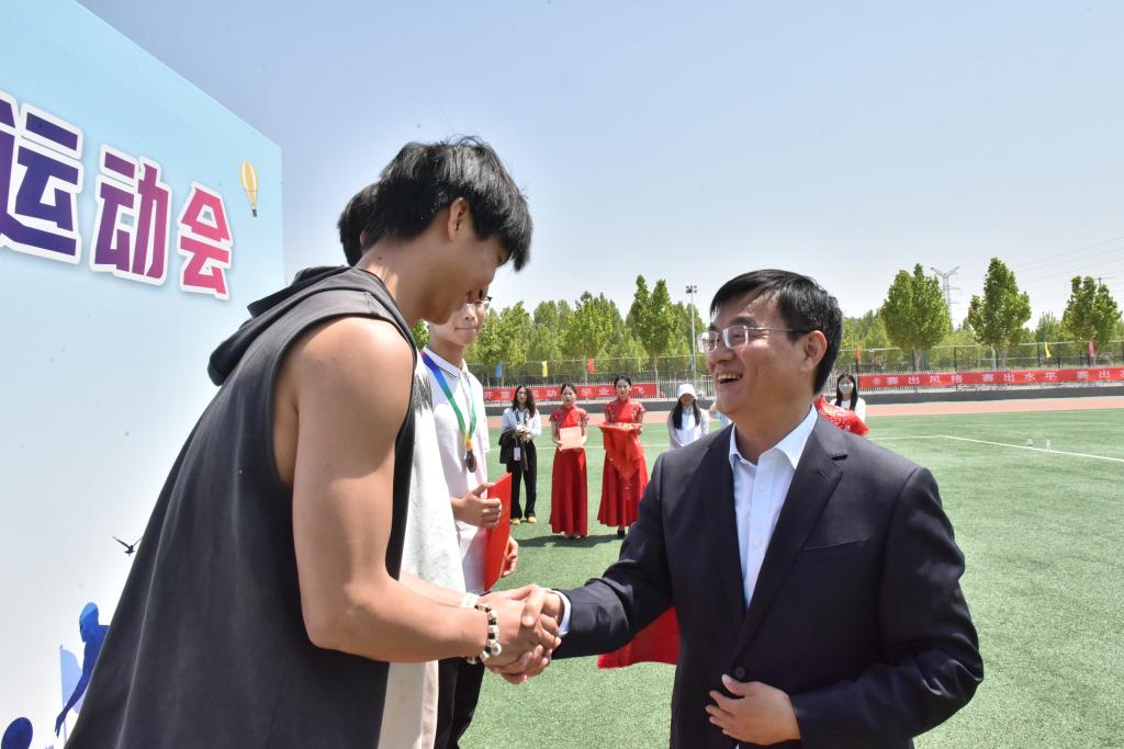 比赛期间,校领导分别为个人单项前三名运动员颁奖。
