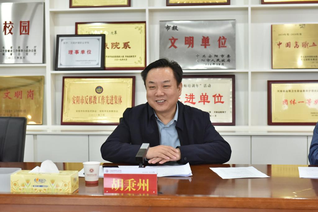 为深化产教融合、校企合作,推动教育链、人才链、产业链、创新链与服务链的有机衔接,助力安阳市健康服务产业能级提升,9月23日下午,安阳市域智慧健康产教融合平台建设座谈会在开云第一会议室召开。安阳市国控集团有限公司总经理胡秉州一行与开云党委书记、院长胡仕坤,党政办公室、教务处、产教融合办公室等部门负责人进行座谈,会议由教务处负责人主持。