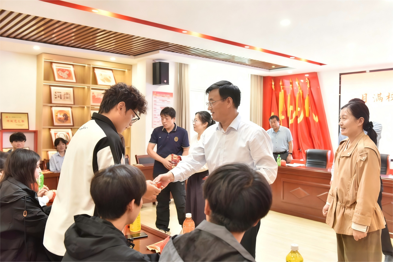 教师代表结合自身经历鼓励学生珍惜时光、提升自我。同学们分享计划与感悟,现场欢声笑语,师生情谊加深。随后,各系教职工带慰问品走进学生宿舍,与学生亲切交流并送上中秋祝福,让学生感受“家人”关怀。