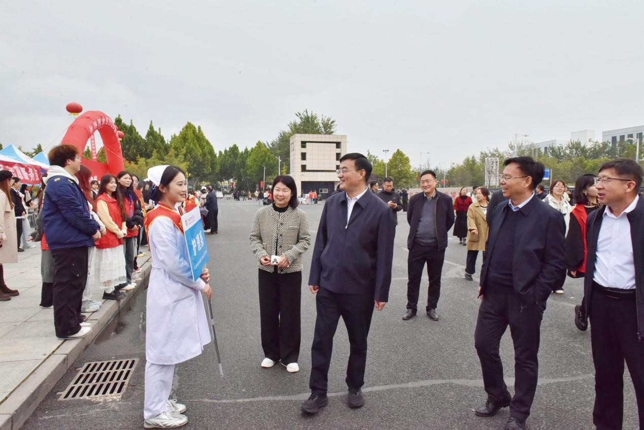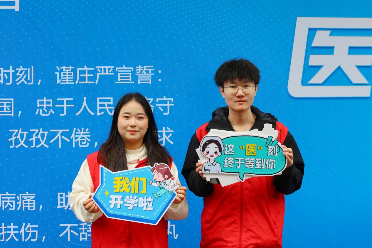党委书记、院长胡仕坤,党委副书记、工会主席钟会亮,副院长郭海旺、副院长常慧敏及相关处室负责人到报到点、学生宿舍和餐厅等,细致察看迎新工作流程,对“走新”又“走心”的迎新工作给予肯定,并向工作人员和志愿者致以衷心感谢。校领导与新生及家长亲切交流,为同学们送上精美“新生大礼包”,勉励他们要迅速适应新环境、融入新集体,以昂扬的斗志追逐医学梦想,以饱满的热情探索成长之路,在勤学苦练中提升专业本领,在全面发展中绽放青春光彩,开启一段满含无限可能与精彩收获的人生新旅程!领导们的关怀与勉励,成为送给新生们的第一份“精神厚礼”。