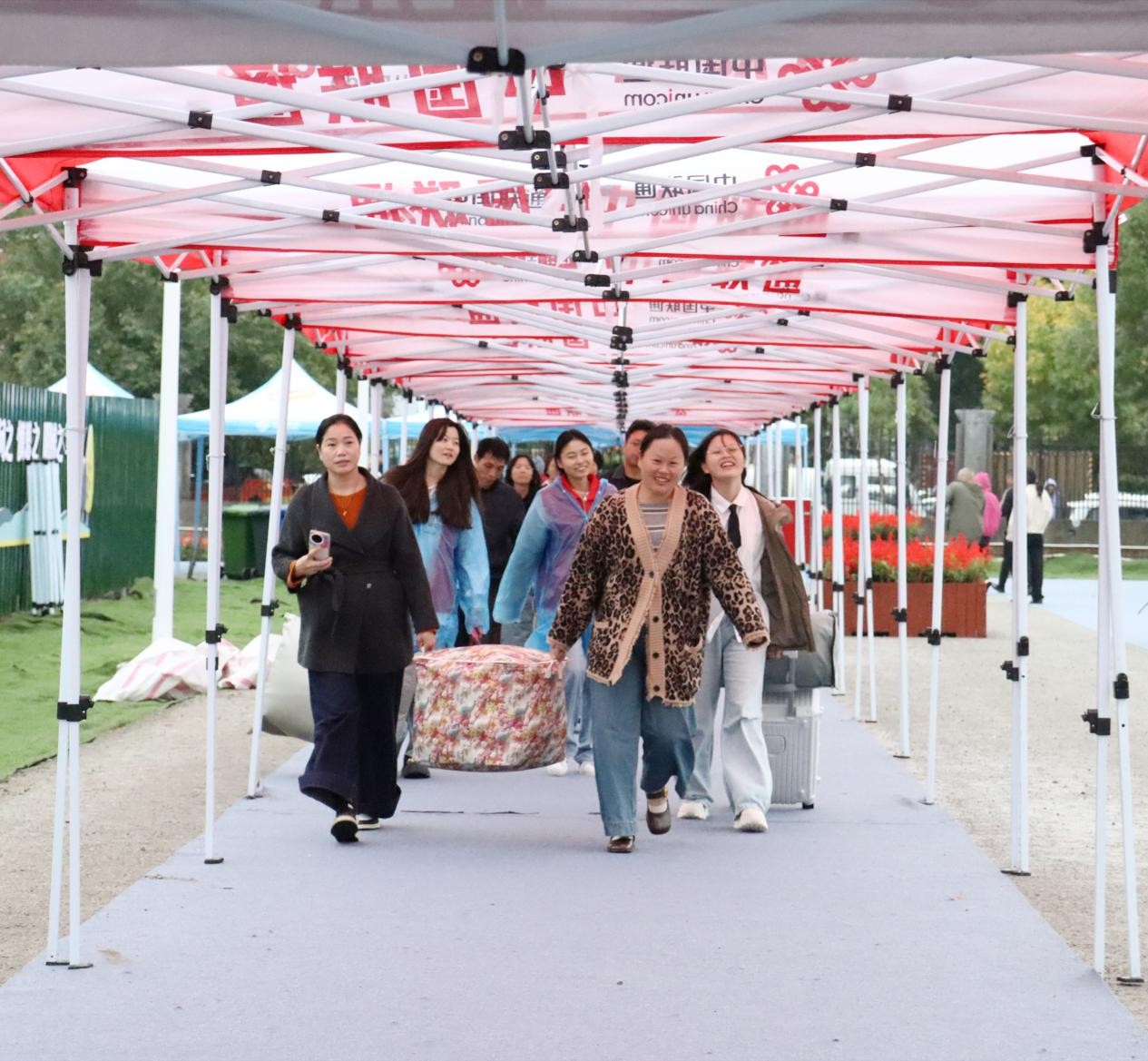 迎新现场,励志的空飘气球迎风舞动,醒目的欢迎标语、精美的宣传展板与动态电子屏交相辉映,清晰详尽的指引标识默默担任“无声向导”。功能齐全的服务矩阵为新生高效报到提供坚实保障,技术服务点与医疗保障点随时待命,专业的报到咨询、征兵宣传与现场缴费助力手续顺利办理,更有彰显人文关怀的“绿色通道”,确保每一位新生顺利开启大学新篇章。为应对可能的风雨天气,数百顶帐篷提前搭建就绪,成为守护新生的“避风港”;数千件雨衣更以最快速度传递到新生手中,用及时的保障消解初来的不便,让校园的第一份关怀直抵人心。