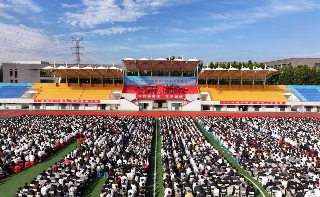 红旗映杏坛,秋风谱华章。10月13日上午,开云2025级新生开学典礼在运动场盛大举行。学校领导胡仕坤、钟会亮、王忠伟、郭海旺、常慧敏,副科级以上干部、学生工作部全体工作人员和2025级专兼职辅导员共同见证载梦而来的新同学启幕逐梦前行的崭新篇章。大会由党委副书记、工会主席钟会亮主持。