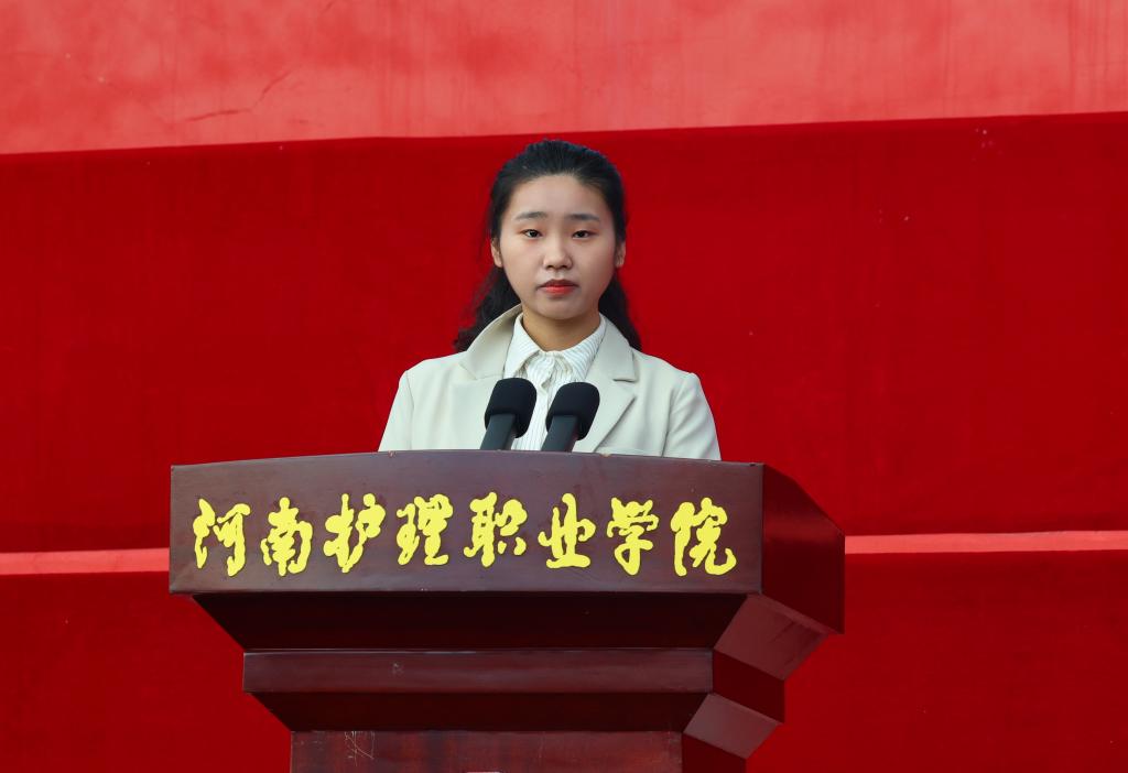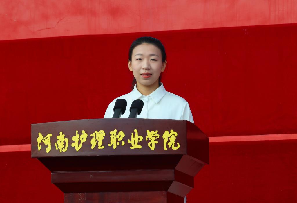 优秀毕业生代表孙远方鼓励广大新生要守护好自己的“向往”,信任脚下的“路”,拥抱前行中的“难”,在河护书写最美的青春篇章。2025级新生代表郭玥号召大家以书本为基石、以实践为路径、以医德为灯塔,传承仁心仁术,锤炼过硬本领,担当时代使命。教师代表孙俊杰深情寄语同学们要以仁心为引、苦练为方,持之以恒,成为一名卓越的大健康工作者。护理系老师付慧雅带领全体新生宣读医学生誓词。铮铮誓言,是生命相托的契约,是穿越时空的回响。