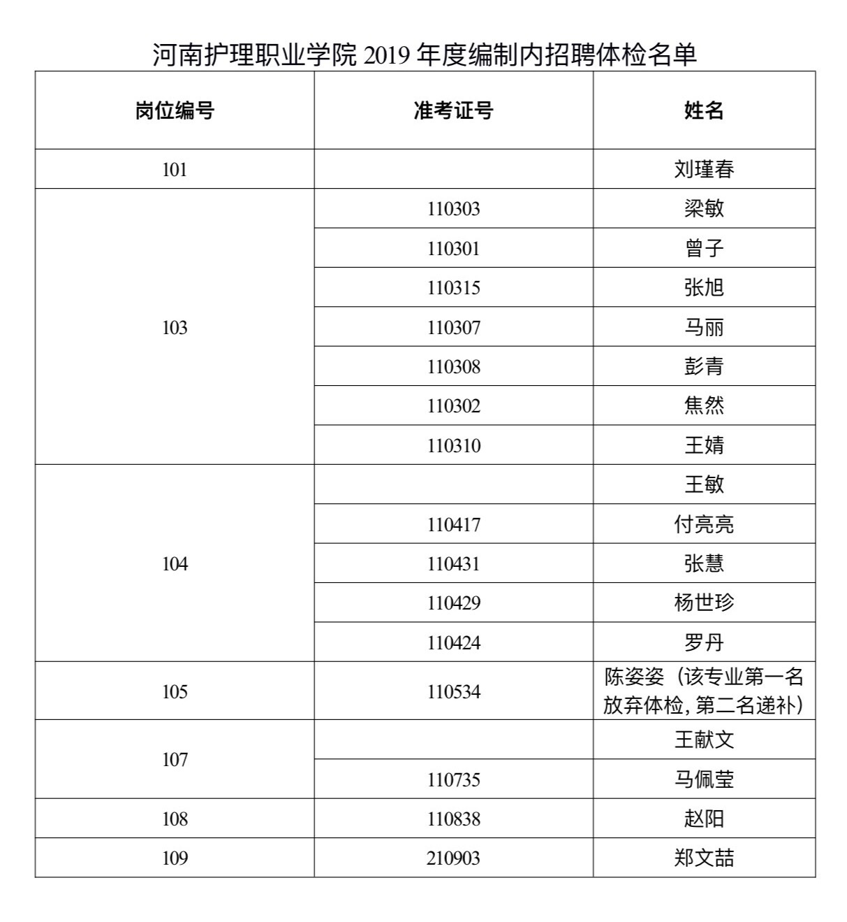 按照招聘方案规定及考试总成绩排名,现公布参加体检名单(见附件),并将有关事项通知如下:
