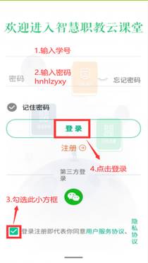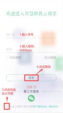 3.在线考试模拟演练前,学生在手机应用市场下载安装“云课堂智慧职教”最新版APP进行考试答题(登陆账号为学生学号,初始密码为hnhlzyxy)。