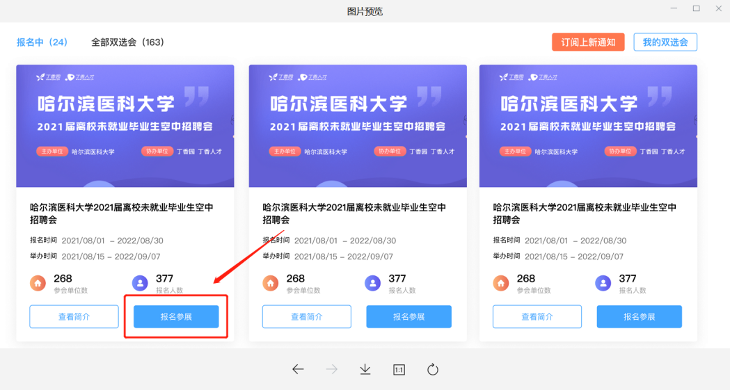 1.电脑登录招聘会报名页面