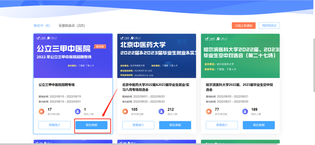 https://www.jobmd.cn/pc.htm#/campusEvent选择立即注册(丁香人才合作单位点击立即登录,建议使用谷歌浏览器)