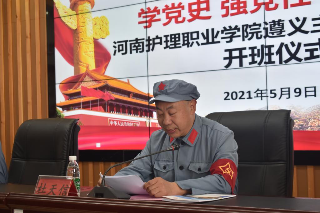 5月9日上午,开班仪式在遵义职业技术学院举行,在开班仪式上,党委书记杜天信指出,本次集中学习是我院开展党史学习教育的一项重要内容,广大领导干部要先学一步、学深一层,充分发挥示范表率作用,做到知史爱党、知史爱国,在学习领悟中坚定理想信念,在奋发有为中践行初心使命。杜天信书记要求,全体学员一要提高思想认识,准确把握党史学习教育目标,深刻领会党史学习教育的核心要义;二要学用结合、学以致用,确保遵义会议精神在学院放射光芒;三要党建引领,文化铸魂,确保发展战略目标顺利变为现实。杜书记强调,全体学员要珍惜学习机会,端正学习态度,服从学习纪律,静下心来学党史,心无旁骛学理论,真正做到学有所思、思有所得、得有所获,真抓实干、干出成效,确保以优异成绩迎接建党100周年。