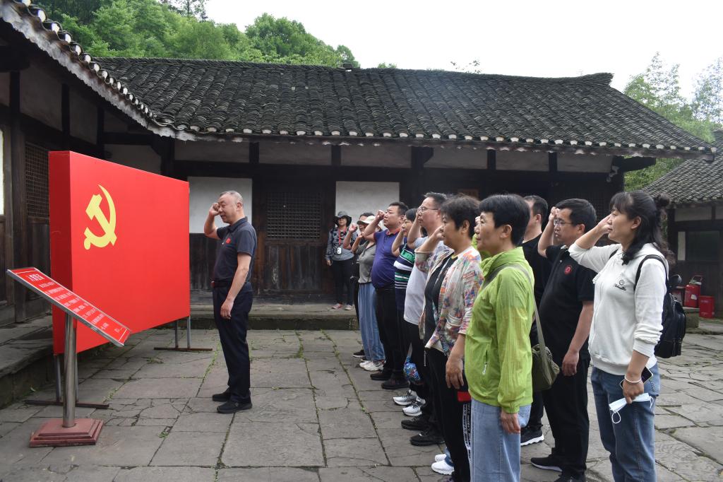 在苟坝会议会址,党委书记杜天信带领全体党员重温入党誓词