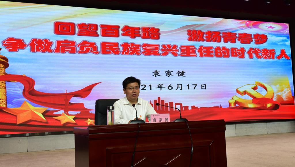 授课中,袁家健从民族觉醒始于青年、百年辉煌成于青年、复兴大业在于青年三个方面,引用丰富事例和详实数据,深入浅出地阐述了中华民族从觉醒走向辉煌、从磨难走向复兴的光辉历程,特别是用一个个鲜活的故事讲述了广大热血青年在中华民族伟大复兴征程中做出的巨大牺牲和伟大贡献。“当今世界正经历百年未有之大变局,今天的中国前所未有地靠近世界舞台中心,前所未有地具有实现民族复兴的能力和信心。”袁家健希望广大青年学子要紧紧握住老一辈传下来的接力棒,从百年党史中汲取伟大力量,在生命力最旺盛的日子里,不负韶华,奋力奔跑,在新的时代里不断创造新的辉煌。