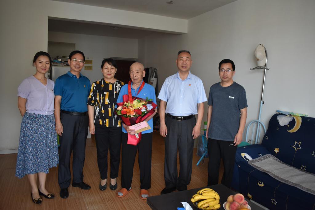 杜书记一行携鲜花、慰问品,专程到家看望了90多岁高龄的离休老校长张顶斋,为他颁发光荣在党50年纪念章,了解他的生活情况,认真聆听老校长讲述亲身经历的革命故事,并嘱咐他保重身体。随后,学院领导又驱车赶到老校区家属院,在离退休干部活动室集中看望慰问了马兴业、王崇新、李恒修等11位光荣在党50年老党员代表。座谈会上,杜书记代表学院党委向老党员们致以节日的问候和真诚的祝福,并与老党员们亲切交谈,询问他们的生活、身体状况,认真听取他们的意见建议,嘱咐他们保重身体,保持好心情。学院领导还专程到家看望慰问了离休干部黄玉凤老师,为她送去慰问品和学院的关怀。