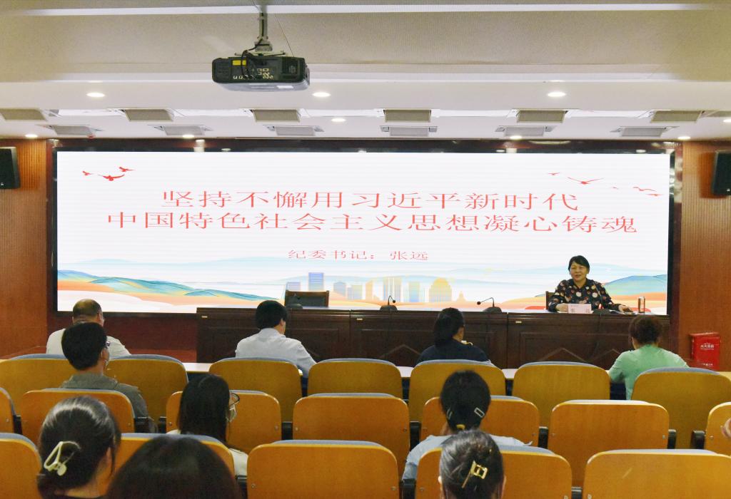 党委委员、纪委书记张远以《坚持不懈用习近平新时代中国特色社会主义思想凝心铸魂》为主题,以习近平新时代中国特色社会主义思想的深刻内涵、历史意义、时代价值为切入点,指出深入开展学习贯彻习近平新时代中国特色社会主义思想主题教育,必须牢牢把握“学思想、强党性、重实践、建新功”的总要求。张远强调,要以深入学习贯彻习近平新时代中国特色社会主义思想这一根本任务为主线,提能力转作风、深调研破难题、闯新路求实效、勇担当善作为,进一步提升政治能力、思维能力和实践能力,增强专业知识、专业能力、专业素养,以履职能力全面提升、精神状态全面提振、工作效率全面提速,努力谱写学校基层党建工作新篇章。