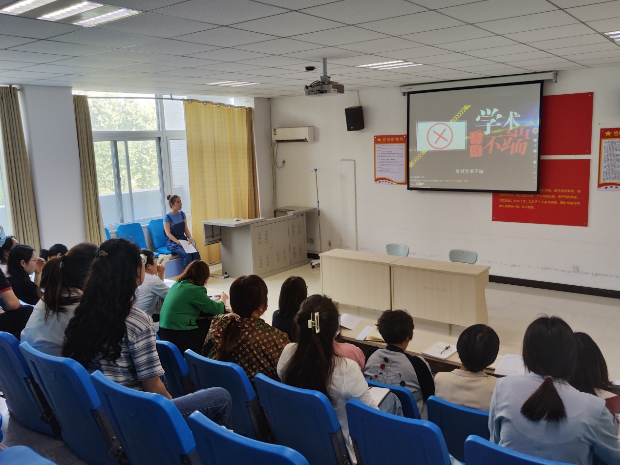 会上,护理系党总支书记王昆仑组织领学了《新时代高校教师职业行为“十项准则”》、《清廉学校创建行动工作方案》、《高等学校教师职业道德规范》等相关政策法规,并向全体教师提出殷切期望,希望大家要努力提升自身道德素质,坚持立德树人,用榜样力量和人格魅力感染、感召、影响学生,做一个“心中有爱,眼中有光,肩上有责,宽严有度”的新时代高校教师。