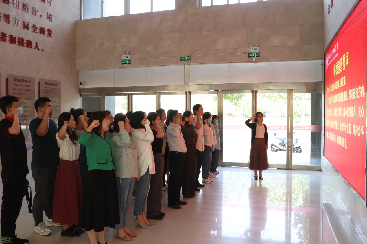 最后,在领誓人护理系副主任冯晓敏的带领下,与会教师全体肃立,右手举拳,庄严宣誓。