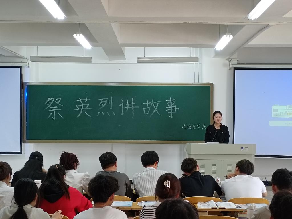 4月19日下午,临床医学系开展以“缅怀革命先烈,共创美好明天”为主题的讲故事比赛。比赛中,选手们的讲授声情并茂、抑扬顿挫,时而气势磅礴、时而抑郁沉稳,讲述革命先烈、民族英雄的感人故事。展现了青年学生对革命先烈的无限崇拜,让现场观众在聆听革命故事的同时,也接受了一次革命精神的洗礼。其中22级临床医学1班陈宇梦同学以其《抗日英雄赵一曼》的故事获得了比赛第一名。